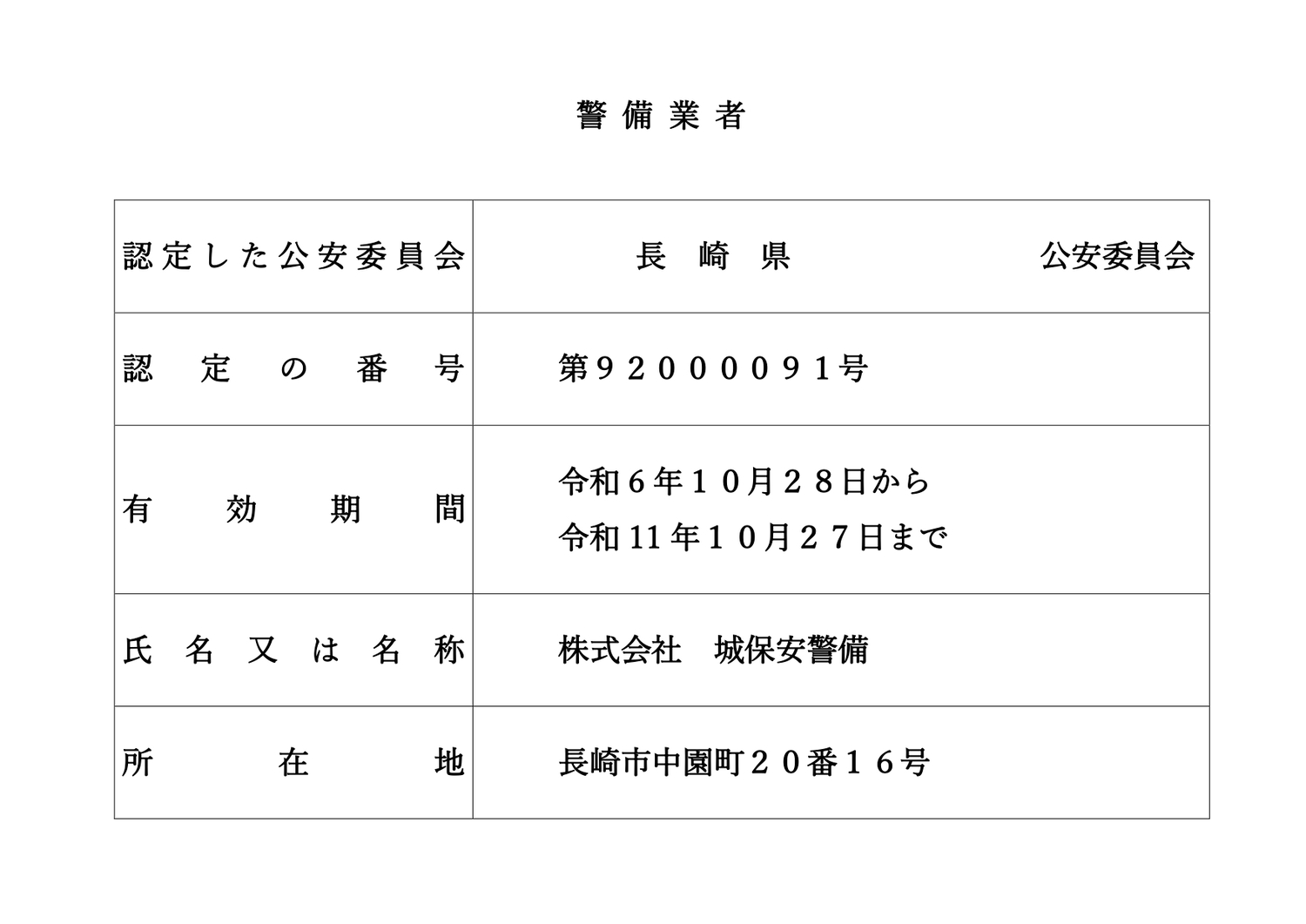 〒852-8155 長崎県長崎市中園町20−16 095-844-0806(代表) 095-844-0007 警備業認定表:認定表を確認する